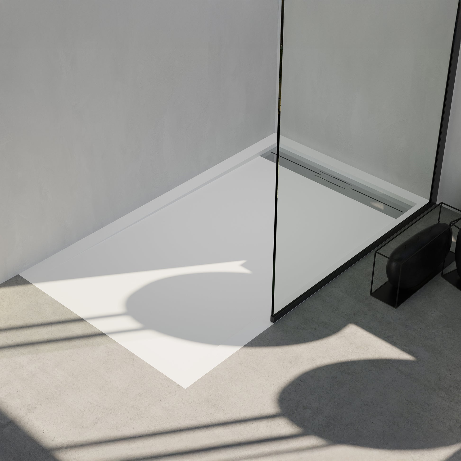 Mineralguss Duschwanne Stone Milo Weiß – Seitlicher Verdeckter Ablauf – Rutschfest und Langlebig