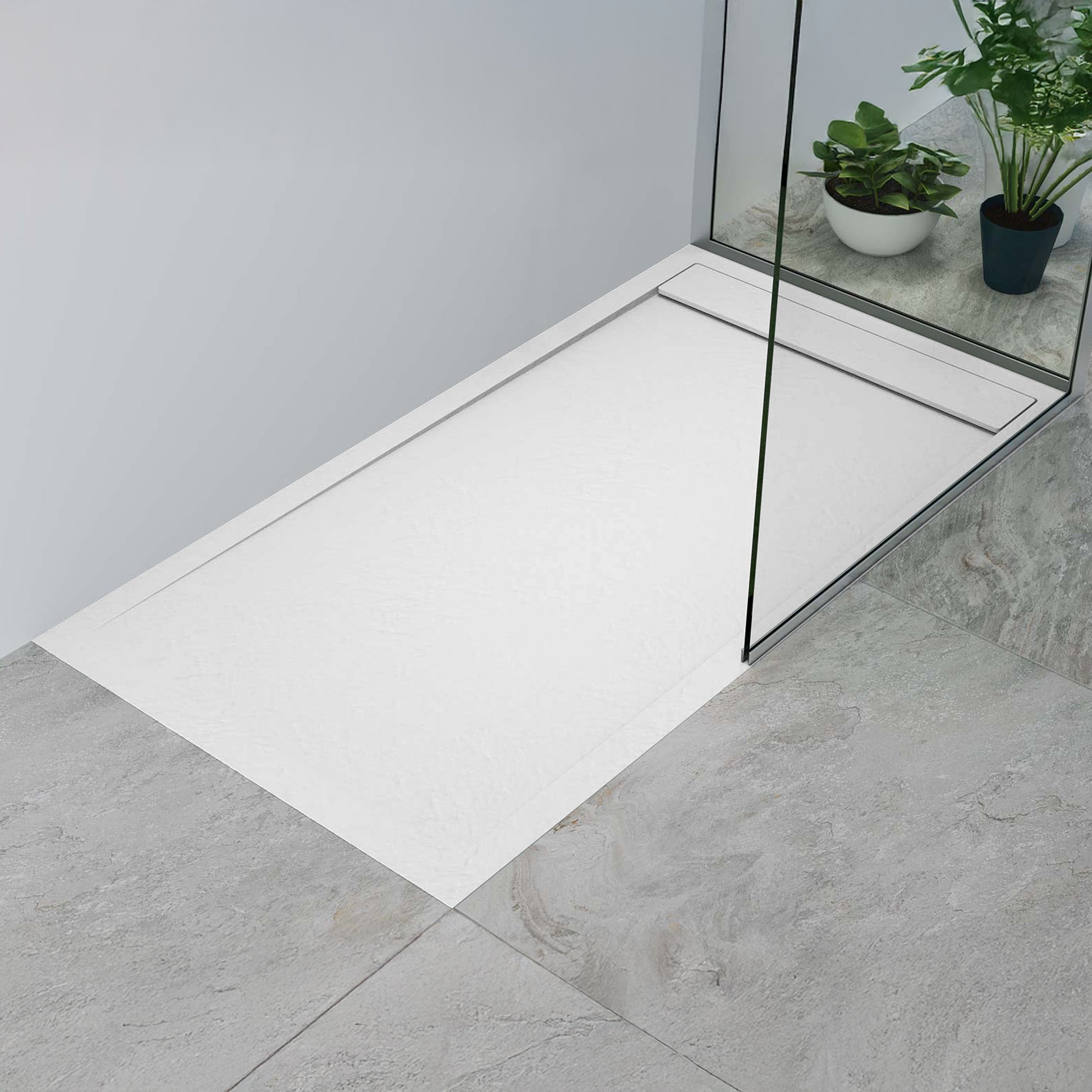 Mineralguss Duschwanne Stone Kali Weiß – Seitlicher Verdeckter Ablauf – Rutschfest und Langlebig