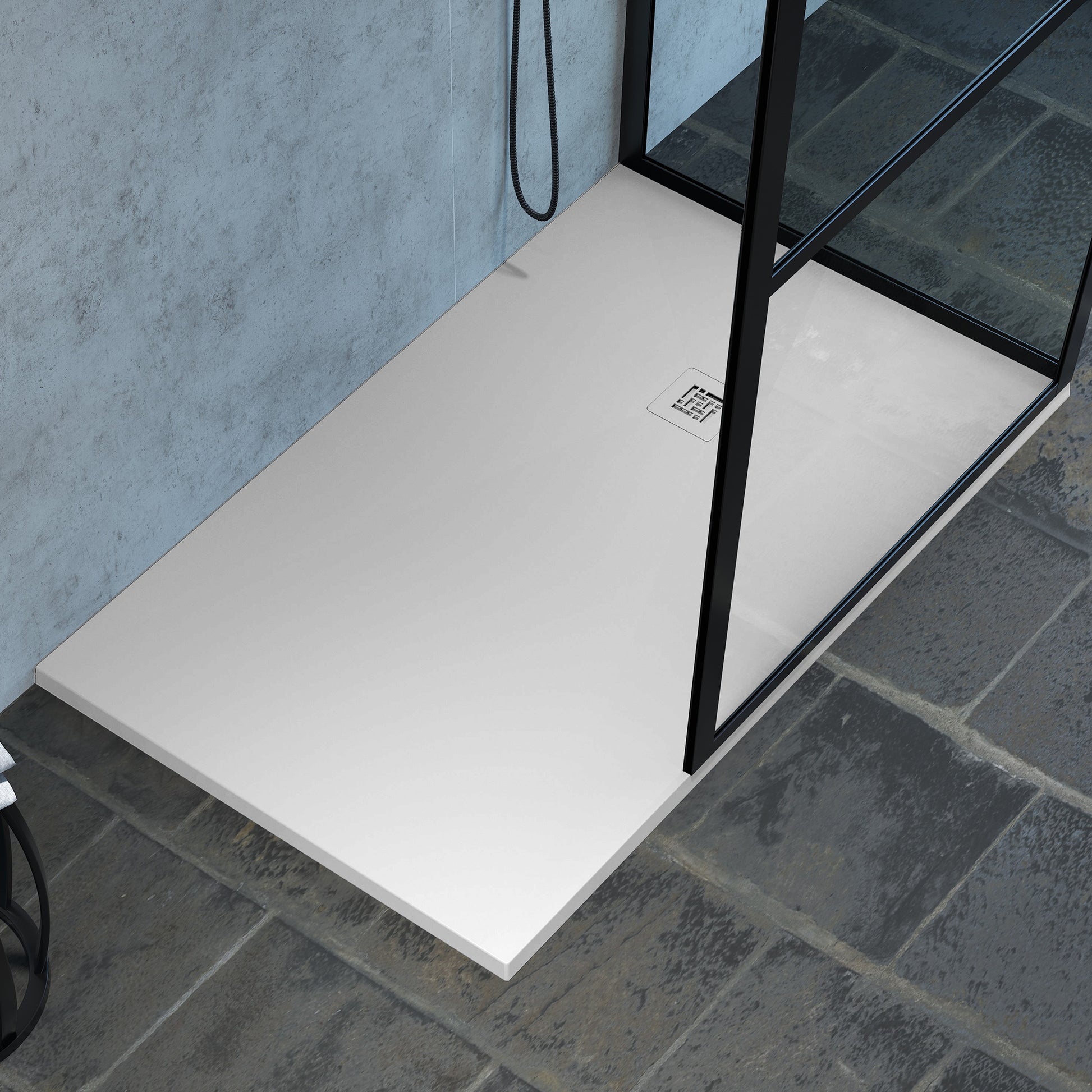 Mineralguss Duschwanne Stone Milo Weiß – Seitlicher Verdeckter Ablauf – Rutschfest und Langlebig