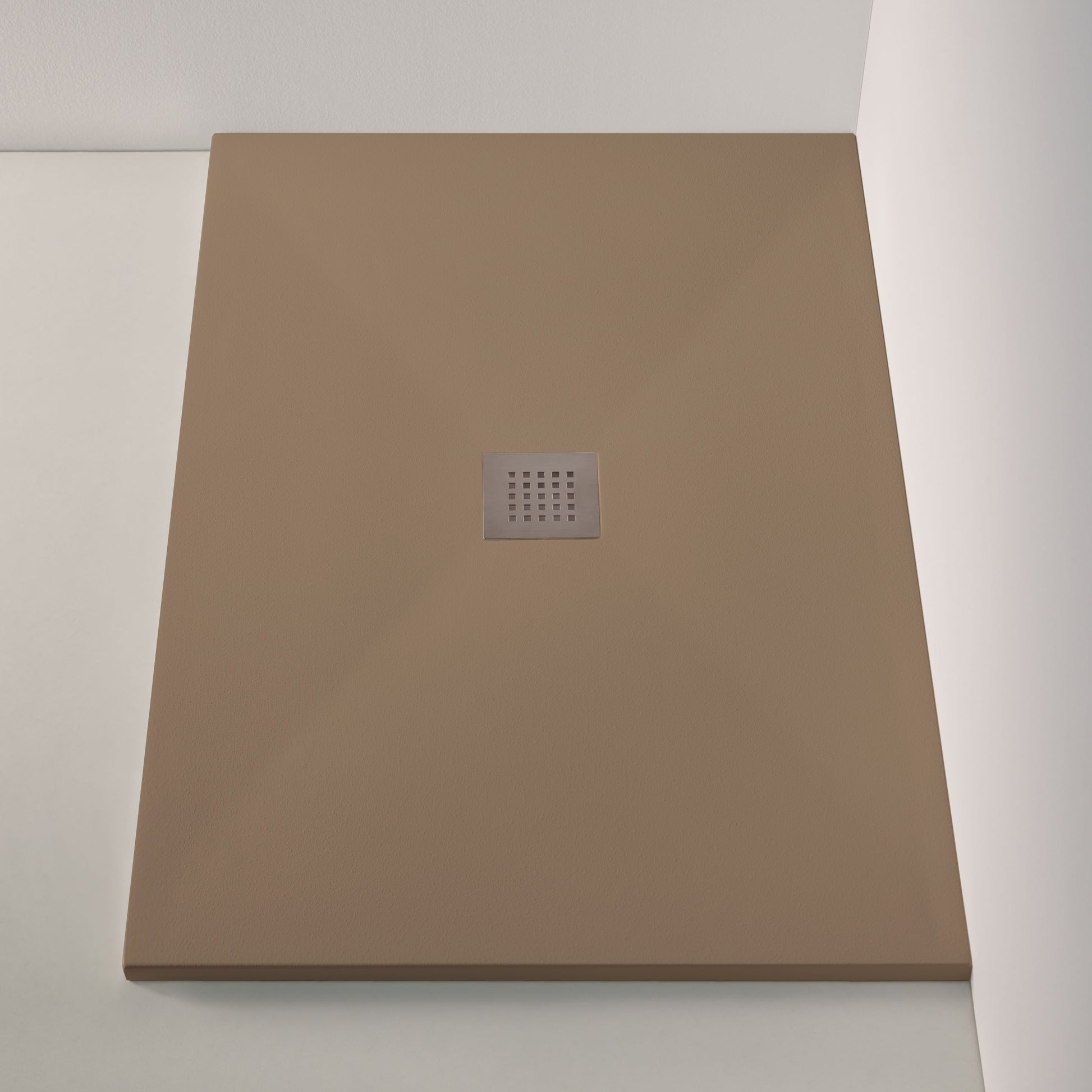 Mineralguss Duschwanne Stone Rhea Mokka – Mittiger Verdeckter Ablauf – Rutschfest und Langlebig