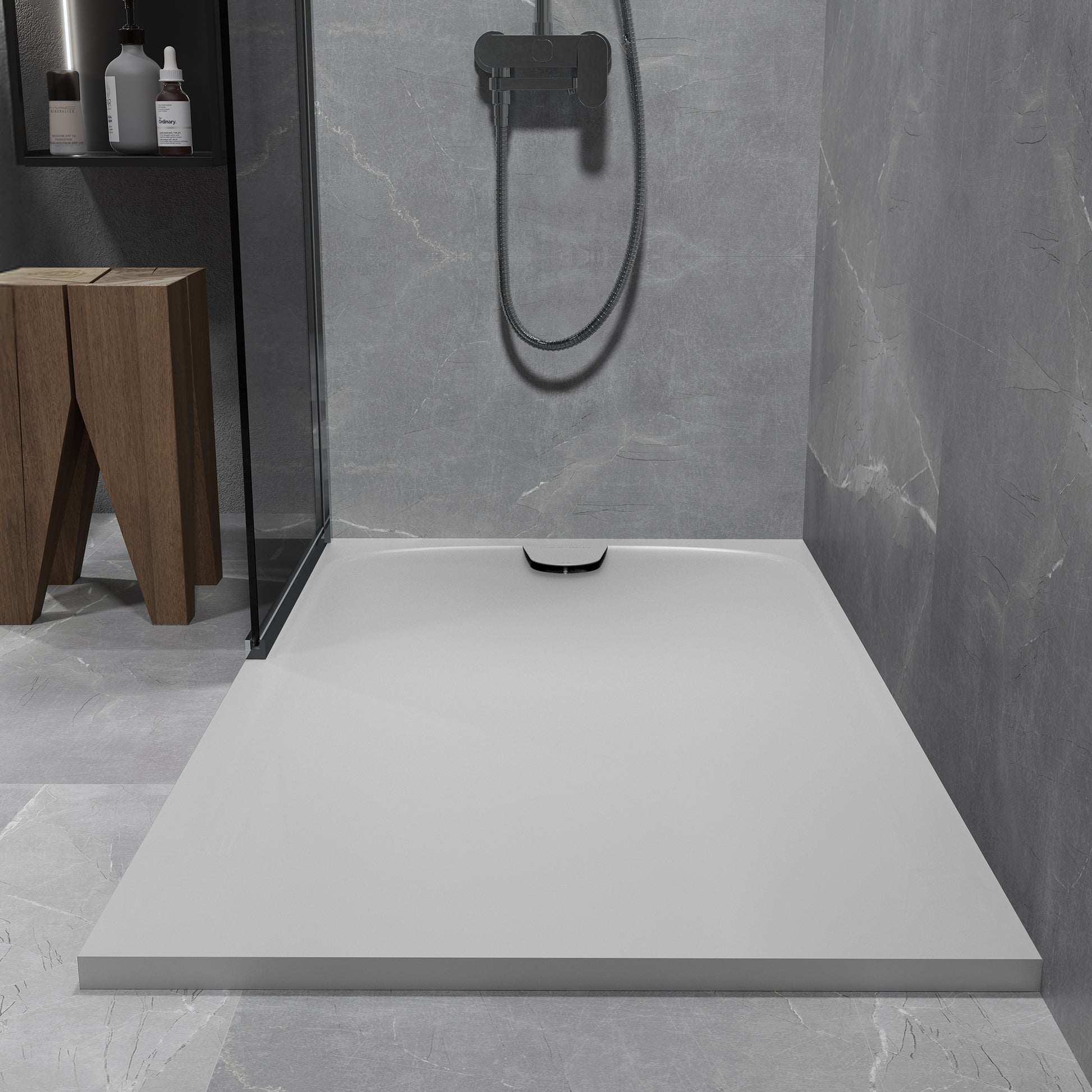 Mineralguss Duschwanne Stone Kali Weiß – Seitlicher Verdeckter Ablauf – Rutschfest und Langlebig