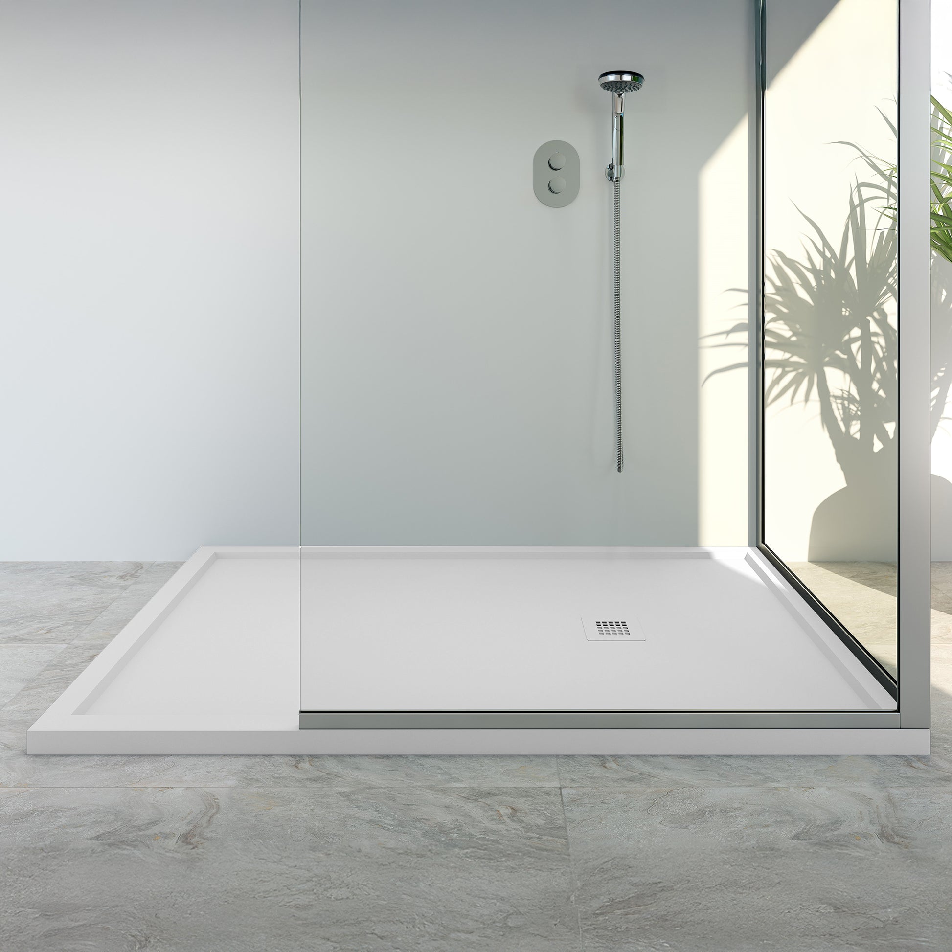 Mineralguss Duschwanne Stone Milo Weiß – Seitlicher Verdeckter Ablauf – Rutschfest und Langlebig